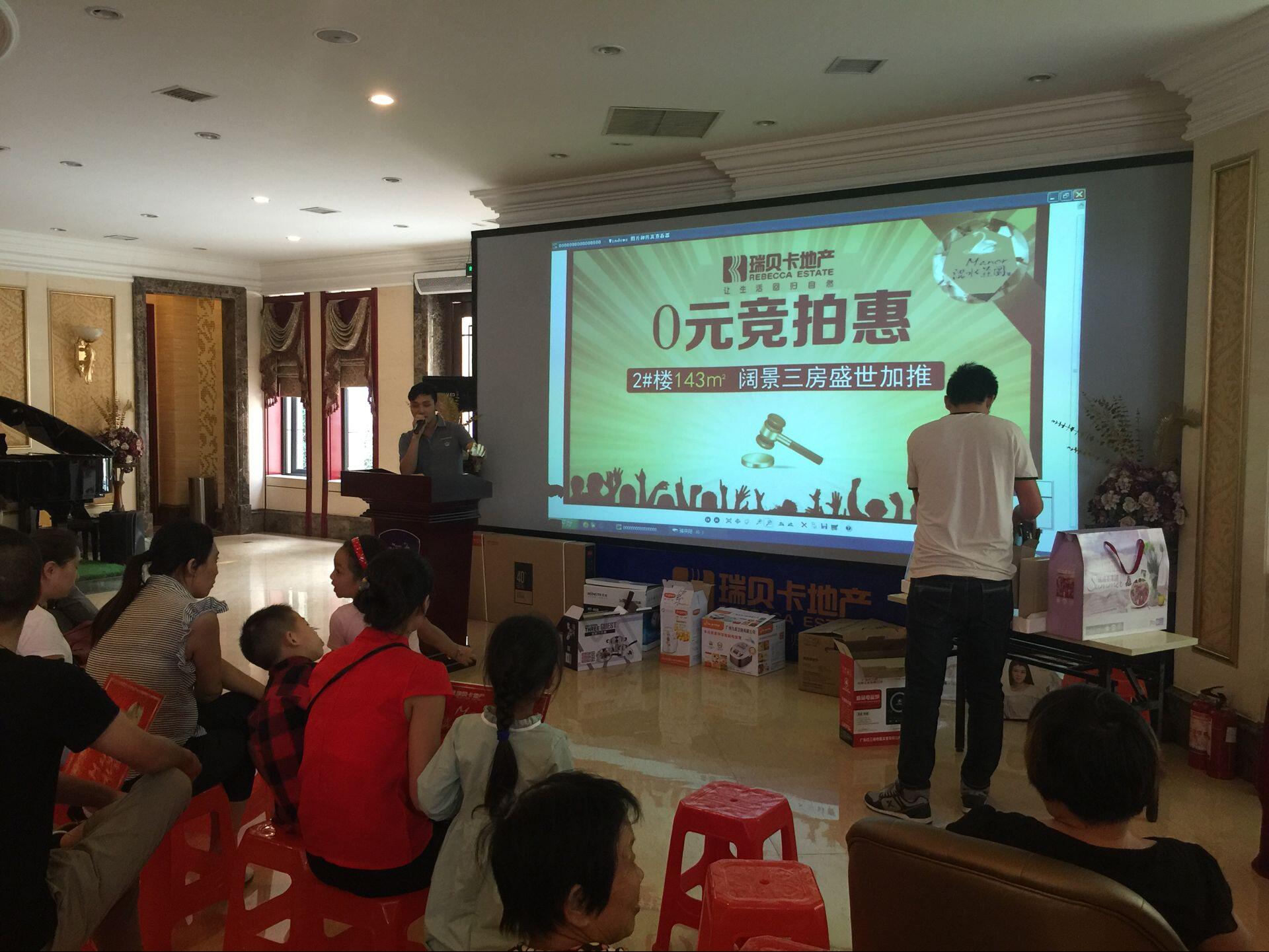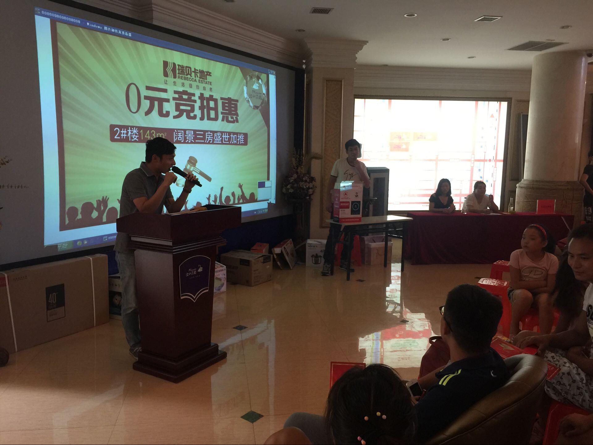 “0”元拍賣會在到訪者的期待中拉開序幕,主持人一一將拍賣商品呈現在拍賣臺,引起場內的“騷動”。 TCL42寸液晶電視、微波爐、電飯煲……數十種名牌家電,齊聚銷售中心。每當主持人介紹完產品,現場的朋友便紛紛舉起號碼牌搶拍自己看中的產品,生怕自己慢了一步,心動的產品被別人搶走了,F場氣氛開心又緊張!