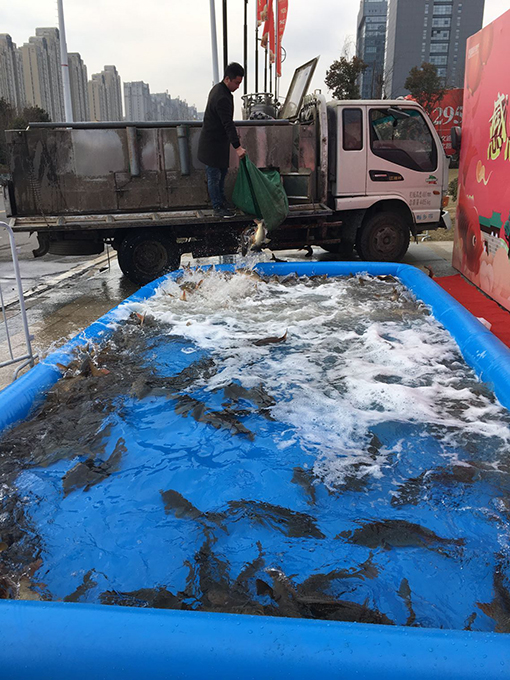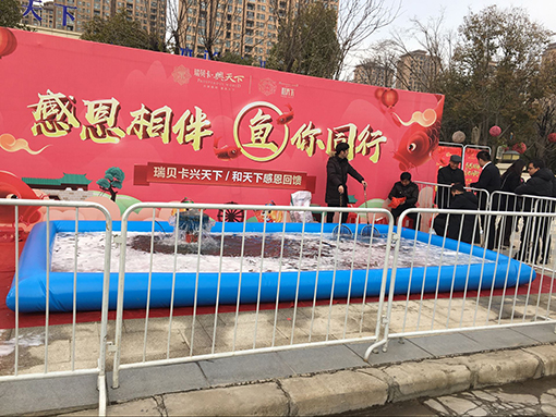 一大早,瑞貝卡興天下的售樓部便排起了長長的隊伍,人聲鼎沸而又熱鬧非凡,而作為此次活動的主角——鯉魚,也早早的被運到活動現場,活蹦亂跳的主角們在水塘里翻騰,而與此番景象交相輝映的是各位活動參與者臉上的愉悅神情。 大家看著充氣魚池里面又肥又大的鯉魚,紛紛表示:魚雖然算不上什么貴重的禮品,但是勝在營養豐富,重要的是有著美好寓意,所以新年伊始,大家都想借此討個吉祥討個喜氣。