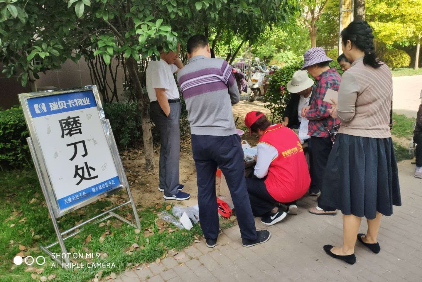 首頁 > 新聞聚焦 > 項目動態5月20日一大早,各項目便開始布置起活動現場。獲知消息的業主早早地趕到現場排隊等候,有拿剪刀等著磨的,有提著鞋要修的,有咨詢健康常識的,有拿著門前地墊要清潔的……。