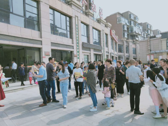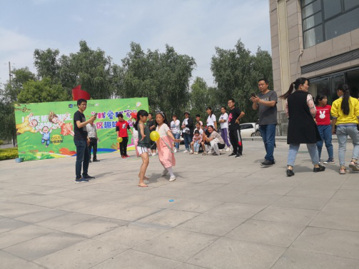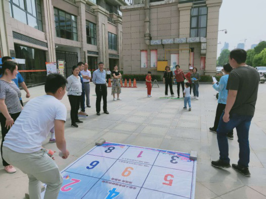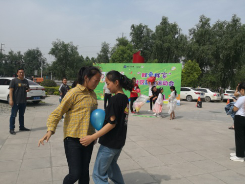 四個比賽項目同時開始,心心相映與擲沙包在社區廣場舉行,筷子夾乒乓球與跳繩在售樓部門口舉行。