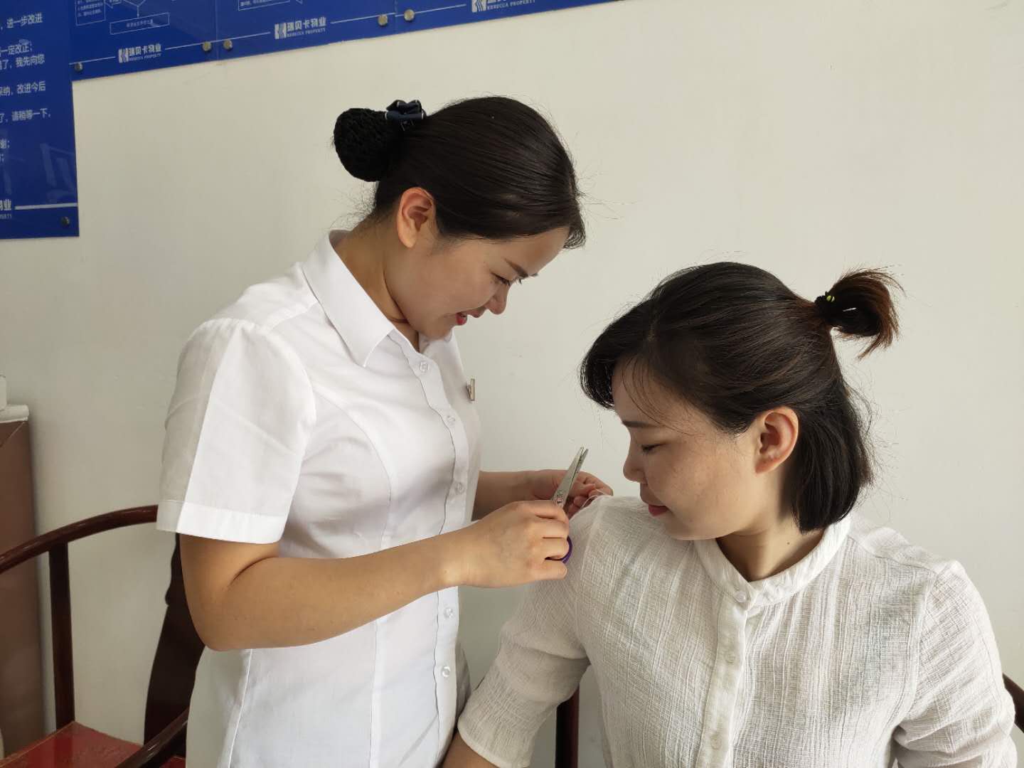 5月20日上午,她去物業服務中心客服前臺辦事出來,準備騎車時,發現自己裙子開線了,當時很是尷尬。正在著急時,她想到物業客服前臺有針線包,就趕緊跑回物業客服前臺。聽說她的裙子開線了,物業客服人員趕緊拿出針線包,幫她縫好了裙子。