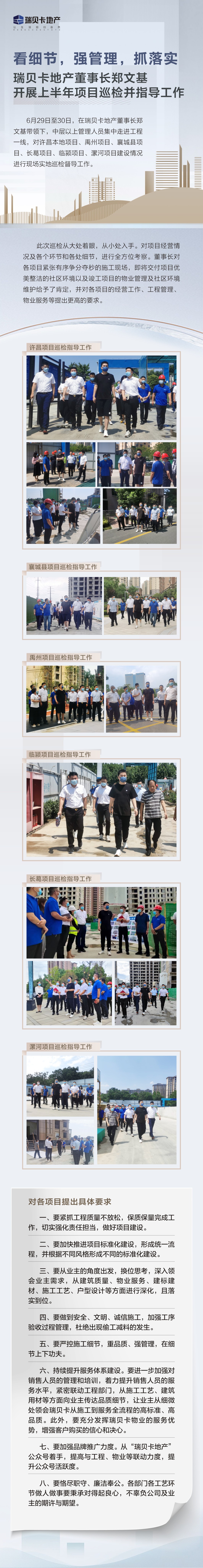 看細節,強管理,抓落實丨瑞貝卡地產董事長鄭文基上半年項目巡檢指導工作