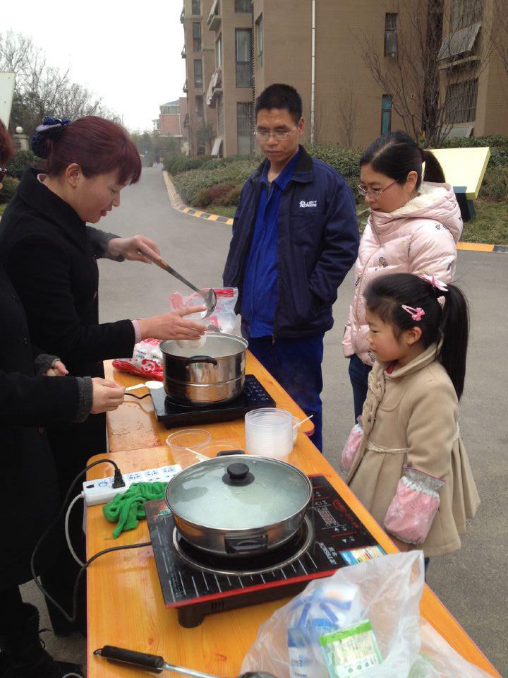 一大早,公維部、工程部和客服部工作人員就分為兩組。一組到1#地南門崗,另一組到2#地南門崗開始煮湯圓。沒過多久香甜可口的湯圓就出鍋了,天氣雖然很冷卻已有好幾位業主在等候。工作人員將熱騰騰的湯圓送至業主手中時,他們很是感動。幾位業主吃過湯圓后都說好吃。雖然早上騎車上班很冷,但他們吃過圓圓滿滿的湯圓后心里暖洋洋的,渾身充滿了熱量。15#樓的蔣叔叔帶著孫子來吃湯圓,小朋友連吃了兩碗,一直說好吃;22A#樓的楊先生帶著兒子過來,一人一碗,隨后又給家人捎了一份回去,楊先生的兒子說很喜歡這樣的活動,很有意義;22#樓的一對老夫婦腿腳不靈便,工作人員就端了兩碗送其家中,老兩口感動地熱淚盈眶,連稱瑞貝卡物業就是貼心。